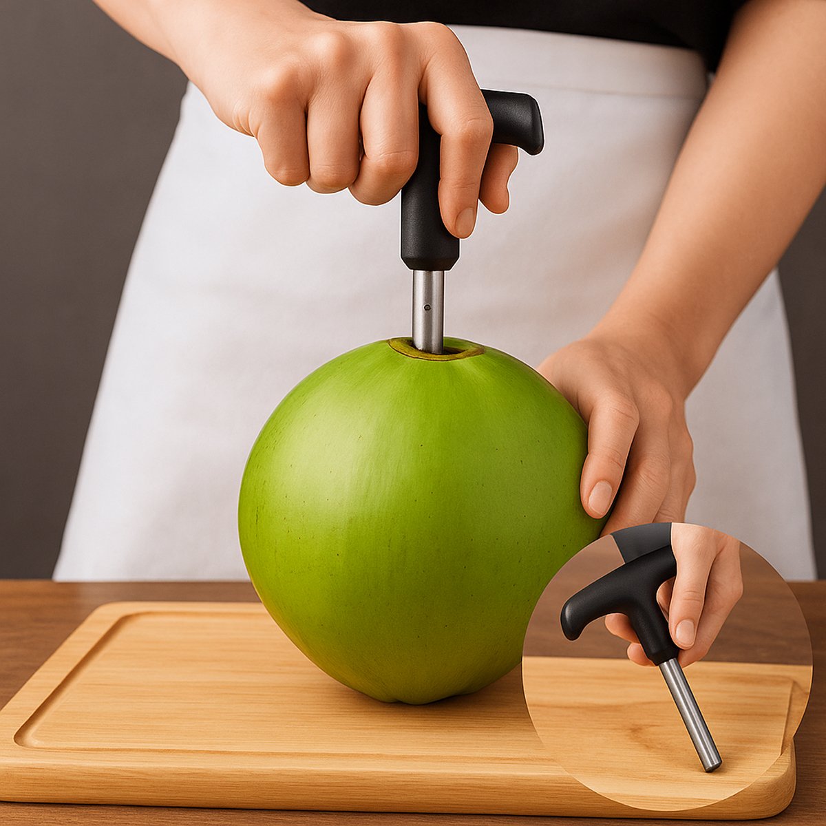 Desfrute da água de coco fresca e natural sempre que quiser! Adquira agora o Furador de Coco Manual e torne seu dia mais saudável e refrescante!